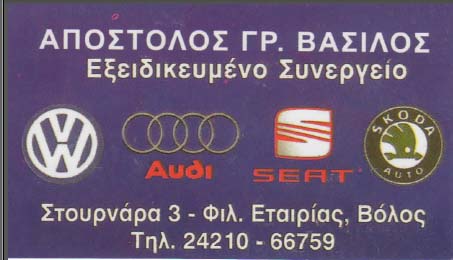 Hier finden Sie alles rund um die Autoreparartur. Es erwartet Sie eine für Griechenland ungewöhnlich freundliche und kompetente Beratung zu kleinen Preisen. Grigorios spricht auch Deutsch! Sehr empfehlenswert! Inhaber: Fragen Sie nach Apostolos Tel: +30 24210 66759 |